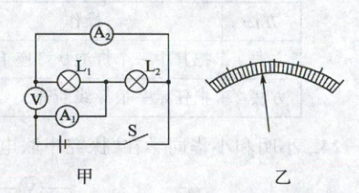 (2)A₂测干路电流,A₁测L₁支路电流。因干路电流大于支路电流,A₂量程为0-3A(分度值0.1A),A₁量程为0-0.6A(分度值0.02A),两表指针位置相同,设偏转n格。则Iₐ₁=0.02n A,Iₐ₂=0.1n A,且Iₐ₂=5Iₐ₁。由图乙指针位置,n=20格,故Iₐ₁=0.02×20=0.4A(L₁电流I₁=0.4A),Iₐ₂=0.1×20=2A。L₂电流I₂=Iₐ₂-I₁=2A-0.4A=1.6A。