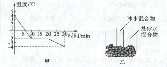(4)如果将一个装有冰水混合物的试管放入正在熔化的盐冰水混合物中,如图乙所示,试管中冰水混合物中的冰会