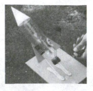 9. 在学校科技周展示中,物理兴趣小组的同学用塑料瓶自制了一个火箭模型,在瓶子的侧壁安装一个电火花发生器,按下按钮会产生电火花.从瓶口喷入酒精后,盖上锥形纸筒,按下按钮,纸筒立即向上飞出.下列说法正确的是(