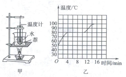 (选填“快”或“慢”),便于及时记录各个时刻的温度.(2) 萘加热一段时间后,可看到烧杯中有“白气”冒出,“白气”是