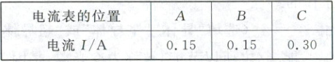 (选填$“L_1”$或$“L_2”)$的电流;(3) 如图丙所示,小明同学在探究“并联电路中电流的特点”时,分别测出了A、B、C处的电流I_A、I_B、I_C并记录下数据如表所示,接下来应该采取的操作是