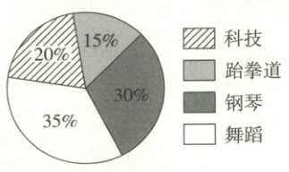 (1)舞蹈 35 (2)跆拳道 15 (3)9