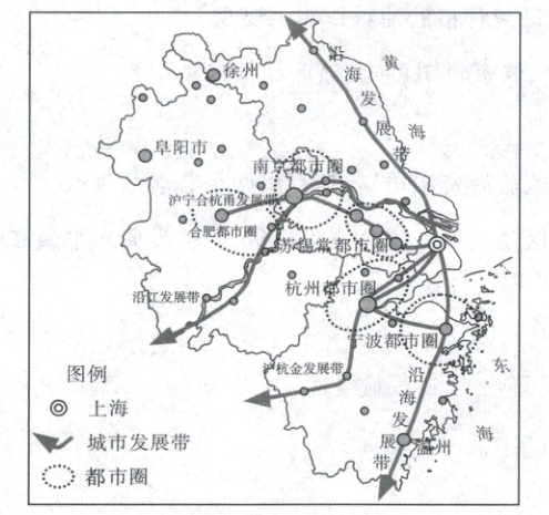 《长江三角洲城市群发展规划》提出,在长三角城市群中构建“一核五圈四带”的网络化空间格局(下图)。据此完成17—19题。
