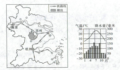 22. 下面为长江三角洲地区地理位置示意图和长江三角洲地区气候资料图。阅读图文材料,回答下列问题。