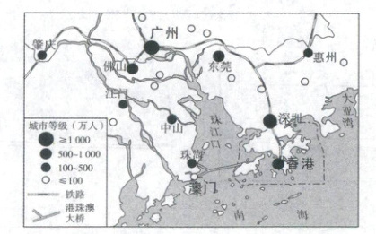 粤港澳大湾区是继美国纽约湾区、旧金山湾区及东京湾区之后的世界第四大湾区。据图,完成6—7题。