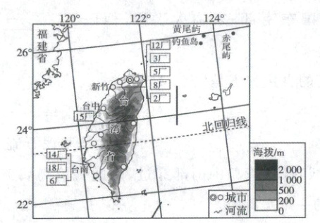 台湾某电路制造公司是世界上最有影响力的芯片制造商之一,其生产的芯片体积小、质量轻、价值高,主要供出口。下图示意该公司在台湾省的主要工厂分布,据此完成17—19题。