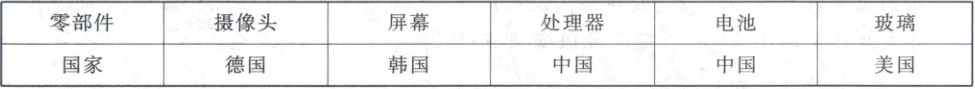 2023 年,我国某公司率先研发出高智能芯片。无论是在智能手机领域、5G 技术还是智能芯片设计,该公司都展现了中国科技企业的创新实力。该公司某品牌手机的 1000 多个元器件中,中国企业提供了 80 个组件,射频前端发射和接收信号设备等核心组件主要来自其他国家。读该公司某品牌手机主要零部件来源表,完成 3—4 题。