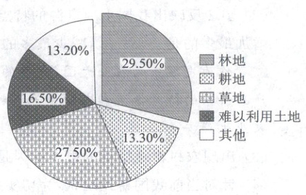耕地是粮食生产的命根子,必须建立耕地用途监测体系,实行最严格的耕地保护制度。右图示意2022年我国土地资源结构。据此完成1-3题。