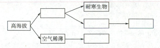 区。(6)青藏高原因地势高而形成独特的自然环境,请将下面的字母填到结构图中对应的方框内。