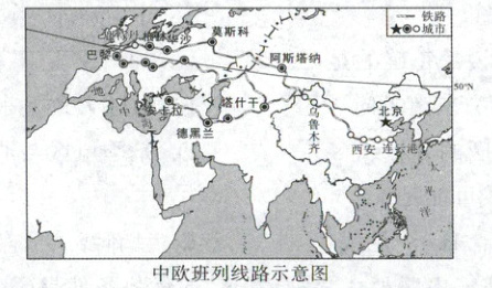 16. 2024 年 11 月 15 日,中欧班列累计开行突破 10 万列,往返于中国与欧洲的国际联运列车给“一带一路”共建国家经济文化方面带来了诸多积极影响。读图,完成下列问题。