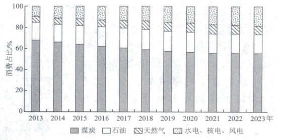 近年来,我国加快能源结构调整。右图示意某年我国能源消费结构。读图,完成 6—7 题。