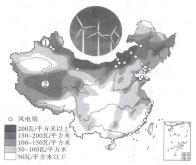 我国力争于 2030 年前二氧化碳排放达到峰值,在 2060 年前实现碳中和。为实现这一目标,开发和利用清洁能源势在必行。读我国风能分布图,完成 8—9 题。