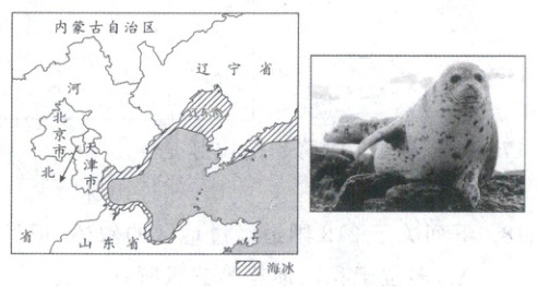 斑海豹每年都会从远方洄游到辽东湾,在海冰上栖息产仔,成为一道奇妙景观。读右图,完成 1—3 题。