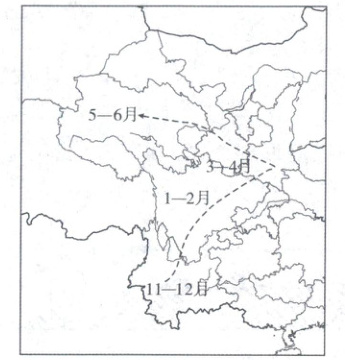 油菜花是我国主要蜜源。为充分利用各地蜜源,提高经济效益,很多养蜂人进行长途转场放养蜜蜂。下图为我国局部地区蜂农转场路线图。读图,完成 26—27 题。