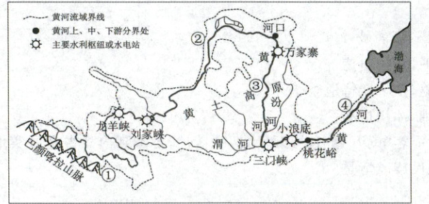 党的十八大以来,习近平总书记多次实地考察黄河流域生态保护和发展情况,在黄河流域生态保护和高质量发展座谈会上强调黄河是中华民族的母亲河,要坚持绿水青山就是金山银山的理念。下图为黄河流域示意图。读图,完成 17—18 题。