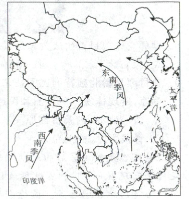 我国是世界上季风气候最为显著的国家。读我国季风分布图,完成 15—16 题。