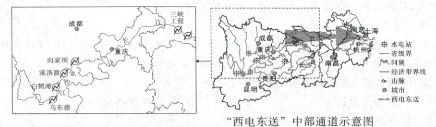 (3)简述“西电东送”工程中部通道对华东地区经济社会发展的重要意义。(4分)