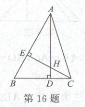 16. 如图,在△ABC 中,∠BAC = 45°,高 AD,CE 交于点 H.若 AB = 19,CE = 12,则 CH =