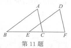 11. 如图,在△ABC 和△DEF 中,已知 AC = DF,BC = EF,要使△ABC ≌ △DEF,可以添加条件: