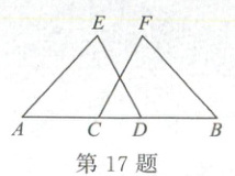 17. (8 分)如图,已知 A,C,D,B 四点共线,且 AC = DB,∠A = ∠B,∠E = ∠F.求证:DE = CF.