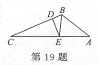 19. (8 分)如图,已知在 $ \triangle ABC $ 中,$ \angle A = 32^{\circ} $,$ BE $ 平分 $ \angle ABC $,$ ED \perp BC $ 于 $ D $,若 $ \angle DEB = 28^{\circ} $,求 $ \angle C $ 的度数.