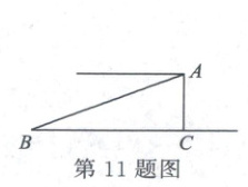 11. 如图,某飞机于空中 $ A $ 处探测到目标 $ C $,此时飞行高度 $ AC = 1200\ m $,从飞机上看地面控制点 $ B $ 的俯角 $ \alpha = 20^{\circ} $,则飞机 $ A $ 到控制点 $ B $ 的距离约为