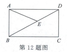 12. 如图,在矩形 $ ABCD (AD > AB) $ 中,$ AB = a $,$ \angle BDA = \theta $,在 $ BD $ 上找一点 $ E $,使得 $ AE = AB $,用 $ a $ 与 $ \theta $ 表示 $ BE = $