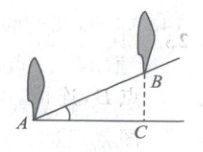 7. 如图,在坡角为 $ 30^{\circ} $ 的斜坡上的两树间的水平距离 $ AC $ 为 $ 2\sqrt{3}\ m $,则两树间的坡面距离 $ AB $ 为(