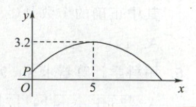 18. (10 分)小红在公园里看到喷泉,喷出的水柱呈抛物线形状,她对此展开研究,测得喷水头 $ P $ 距地面 0.7 m,水柱在距喷水头水平距离 5 m 处达到最高,最高点距地面 3.2 m,建立如图所示的平面直角坐标系,并设抛物线的表达式为 $ y = a(x - h)^{2}+k $,其中 $ x $(单位:m)是水柱距喷水头的水平距离,$ y $(单位:m)是水柱距地面的高度.