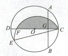 (2)点 E 为圆上一点,∠ECD = 15°,将$\overset{\frown}{CE}$沿弦 CE 翻折,交 CD 于点 F,求图中阴影部分的面积.