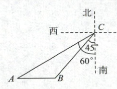 过点C作正南方向射线CE,过B作BE⊥CE于E,过A作AE⊥CE于E(A、B南北方向相同,垂足为E)。