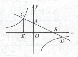 22. (10 分)如图,在平面直角坐标系 $ xOy $ 中,直线 $ AB $ 分别与 $ x $ 轴、$ y $ 轴交于点 $ B $,$ A $,与反比例函数的图象分别交于点 $ C $,$ D $,$ CE \perp x $ 轴于点 $ E $,$ \tan \angle ABO = \frac{1}{2} $,$ OB = 8 $,$ OE = 4 $.求该反比例函数的表达式.