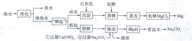 20. 海洋是巨大的资源宝库,人类应合理开发利用。下面是某市海水综合利用的部分工艺流程图(部分过程和产物略),据图回答下列问题。