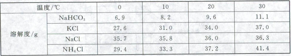 11. 化学兴趣小组探究碳酸氢钠、氯化钾、氯化钠和氯化铵的溶解性时,查阅资料如下: