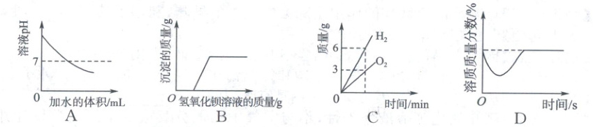 C.电解水生成氢气和氧气的质量与反应时间的关系