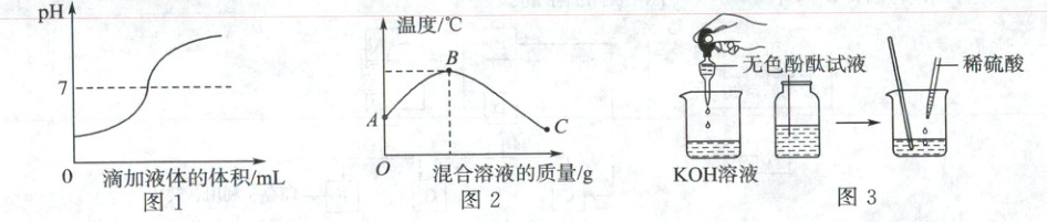 乙同学在实验过程中,测得反应混合溶液的温度变化如图2所示,说明稀硫酸与氢氧化钾溶液发生的反应_________(填“吸收”或“放出”)热量。