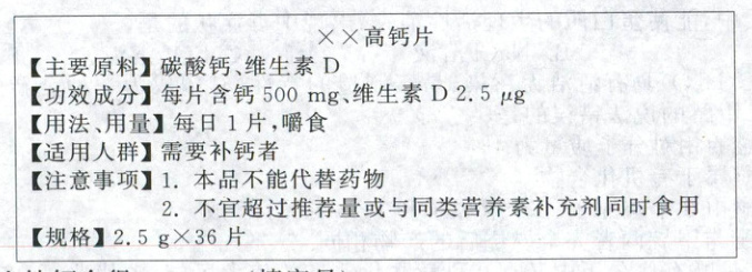 22. 未成年人和老年人是需要补钙的主要人群,目前市面上有许多补钙的钙片,下图是某高钙片的部分说明。某课外兴趣小组欲检验说明的真伪,进行了以下实验:① 取 1 片片剂研碎;② 将其加入足量稀盐酸中;③ 完全反应后收集到 0.55 g 二氧化碳。试回答下列问题。