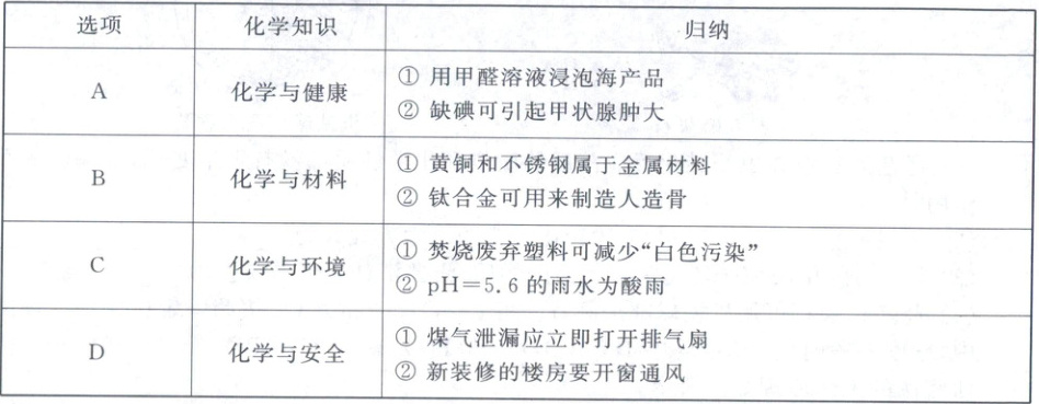 7. 化学与生活息息相关。下列各组对知识的归纳完全正确的是(