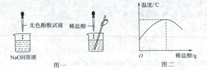(1) 向盛有氢氧化钠的溶液的烧杯中滴入几滴无色酚酞试液,再逐滴加入稀盐酸,并不断搅拌(如图一所示)。