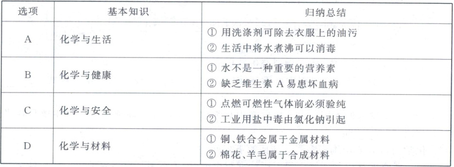 10. 归纳总结有利于思维能力的培养。下列归纳总结完全正确的一组是(