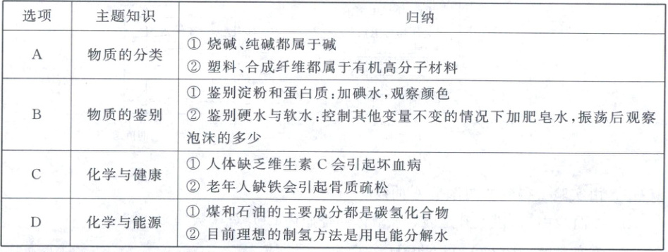 8. 归纳梳理是一种重要的学习方法。下列选项中,对某一主题知识的归纳完全正确的是(