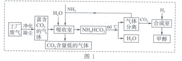 19. (9 分)二氧化碳捕集技术为实现 $CO_2$ 的资源化利用提供了支持。图 1 为“氨法”捕集 $CO_2$ 生产甲醇($CH_4O$)的流程图。