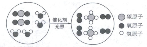 D.从表示方法看,该反应的化学方程式为${2CO_{2} + 4H_{2}O \xlongequal[光照]{催化剂} 2CH_{4} + 4O_{2}}$