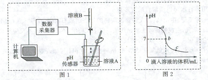 13. 某兴趣小组借助数字化技术探究“稀盐酸与氢氧化钠溶液的反应”。图1是室温下稀盐酸与稀氢氧化钠溶液反应的实验装置,图2是反应过程中的pH变化曲线。