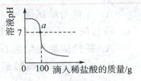 14. 将10 g含有NaCl杂质的某烧碱样品完全溶于90 g水中,再向所得溶液中慢慢滴入溶质质量分数为7.3%的稀盐酸。在实验过程中,溶液的pH与滴入稀盐酸的质量关系如图所示。