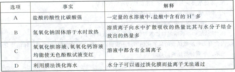 11. 下列事实的微观解释错误的是