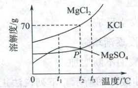 D.将$t_3$℃时$MgSO_4的饱和溶液降温至t_1$℃,无晶体析出