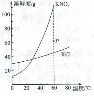 C.60℃时,P点表示的$KNO_3$溶液还能继续溶解$KNO_3$固体