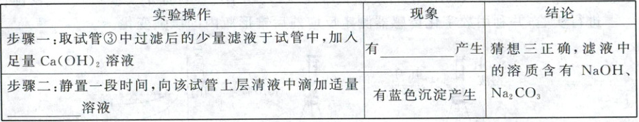 验证猜想三成立,滤液中的溶质中含有NaOH、$Na_2CO_3。$