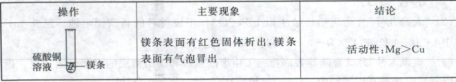 (4) 丁同学通过如表所示实验探究镁和铜的活动性强弱。